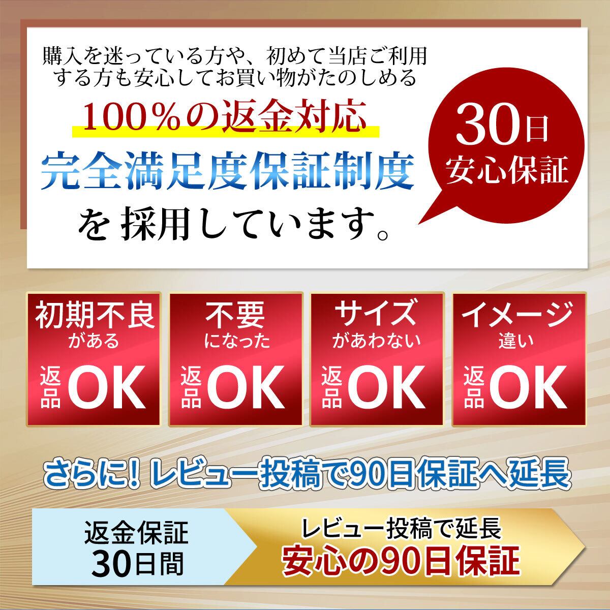 全額返金、または交換をもって対応させていただきます。