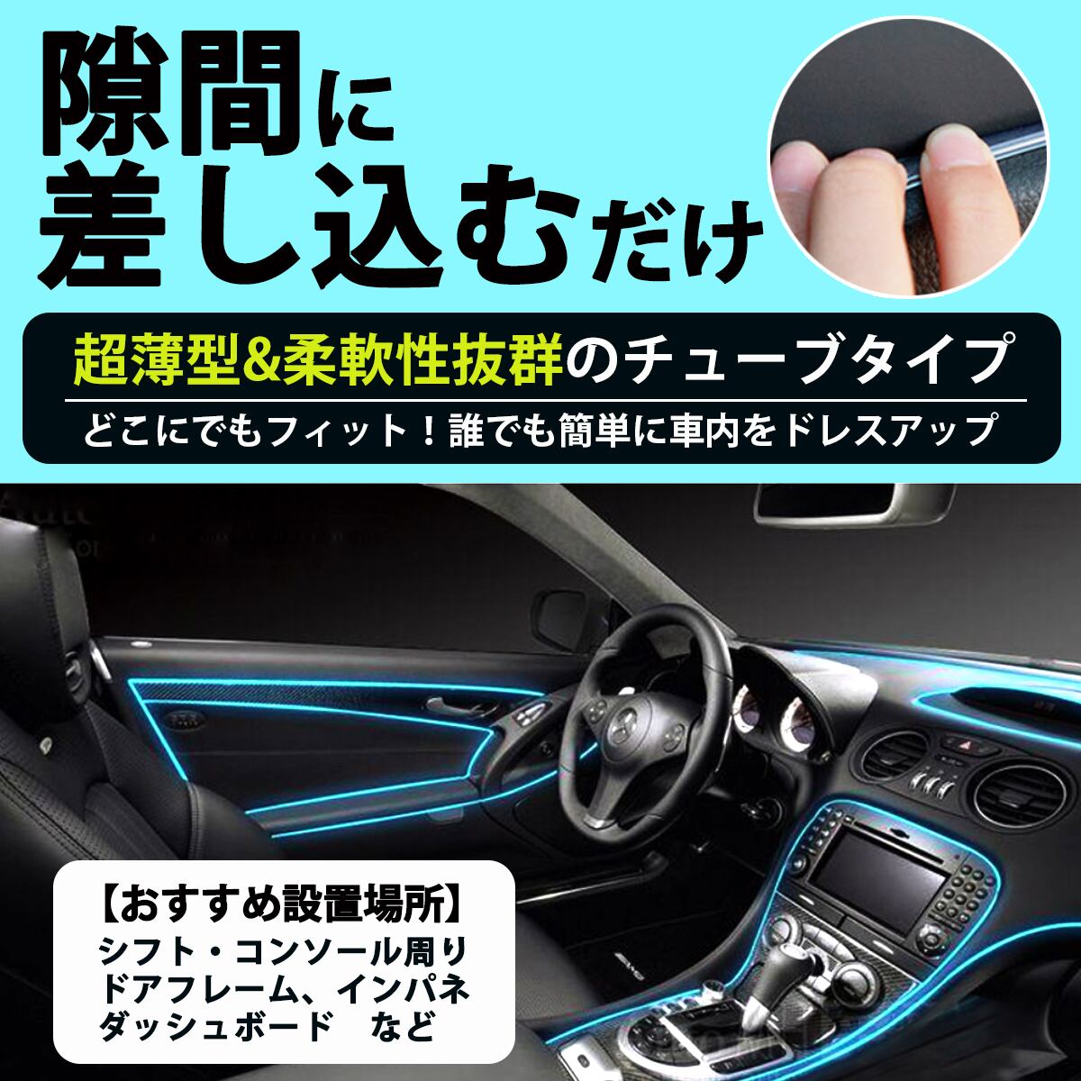 ・柔軟性と防水性に優れ、超薄型で平らな形状なのでどんな形にも曲げられるチューブタイプ!隙間や曲面にもフィットしてくれるので自分の理想の車内に仕上げられます。