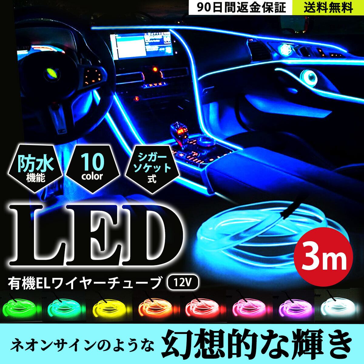 ・放熱や紫外線がなく環境に優しい高品質ネオンで寿命も長く、耐久性抜群!シガーソケットに繋げるだけなので誰でも簡単に愛車をドレスアップしてくれます。カラーも豊富な10カラーから選べます。