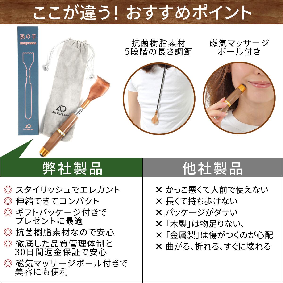 ・「背中のかゆみ」でお悩みのあなたに!どこにでも持ち歩ける超軽量・コンパクトな手のひらサイズの「孫の手」。重さはわずかタマゴ1個分。更に「磁気ボール」付きなので、手軽に顔立ちから全身まで艶やかに引き締める事ができます。