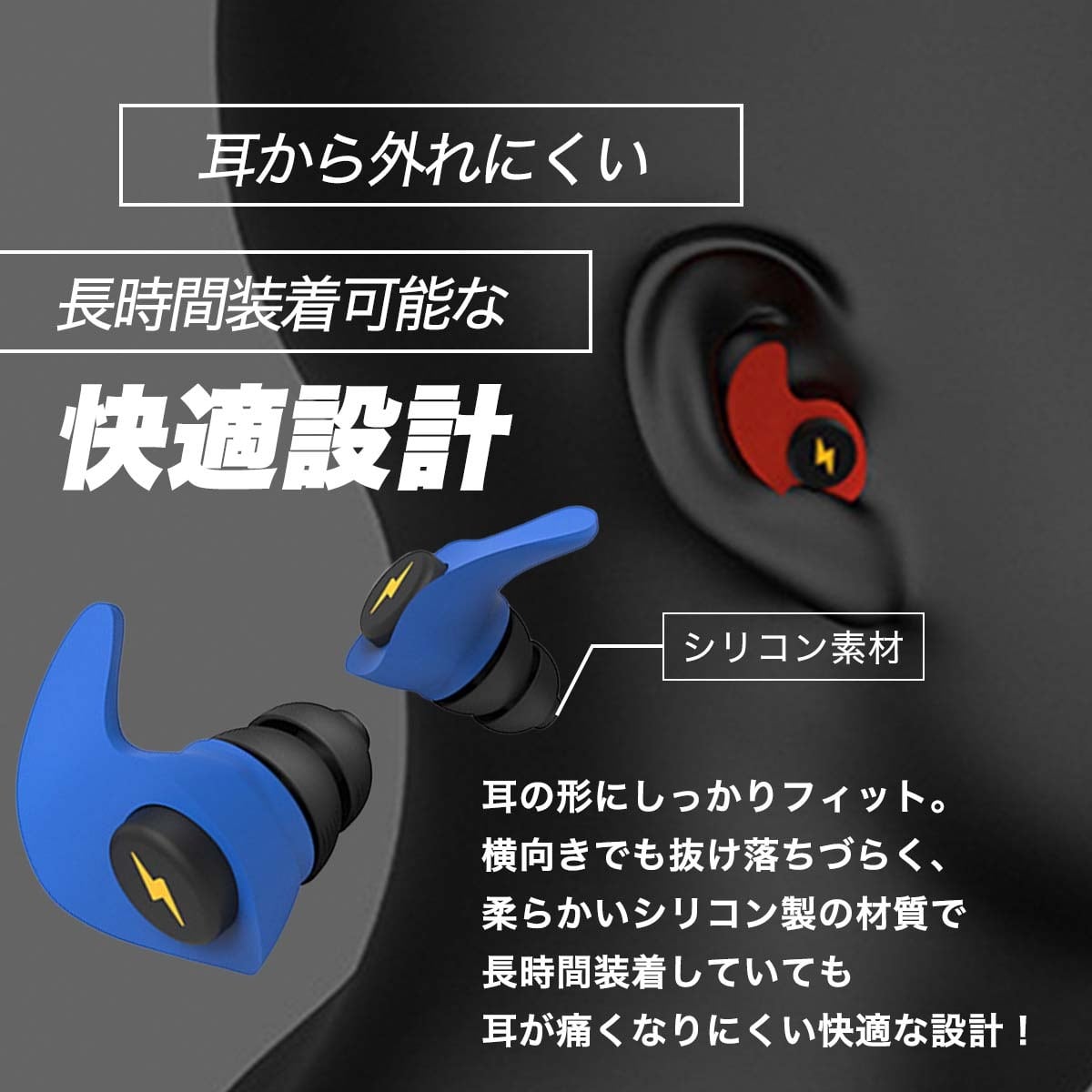 ・柔らかいシリコン製の材質と人間工学に基づいたデザインは、外耳道にフィットし長時間装着していても耳が痛くない!横向きでもしっかりフィットし、抜け落ちづらいので安眠グッズにとてもおすすめ!
