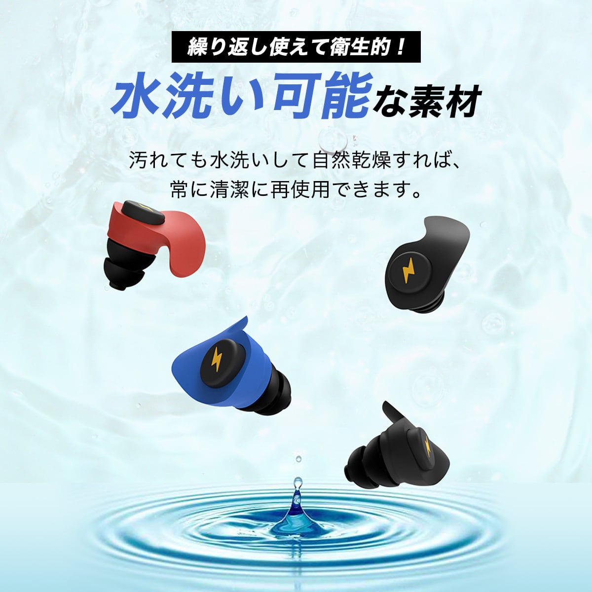 ・耳栓はシリコン1ペア・スポンジ5ペア入っており、好みに合わせて自由に替えられます。もし汚れても、水洗いして自然乾燥すれば常に清潔に使用できます。カラーもシンプルで使いやすい3カラーから選べます。(注意;一部仕様変更のためスポンジがグレーの商品がございます。)